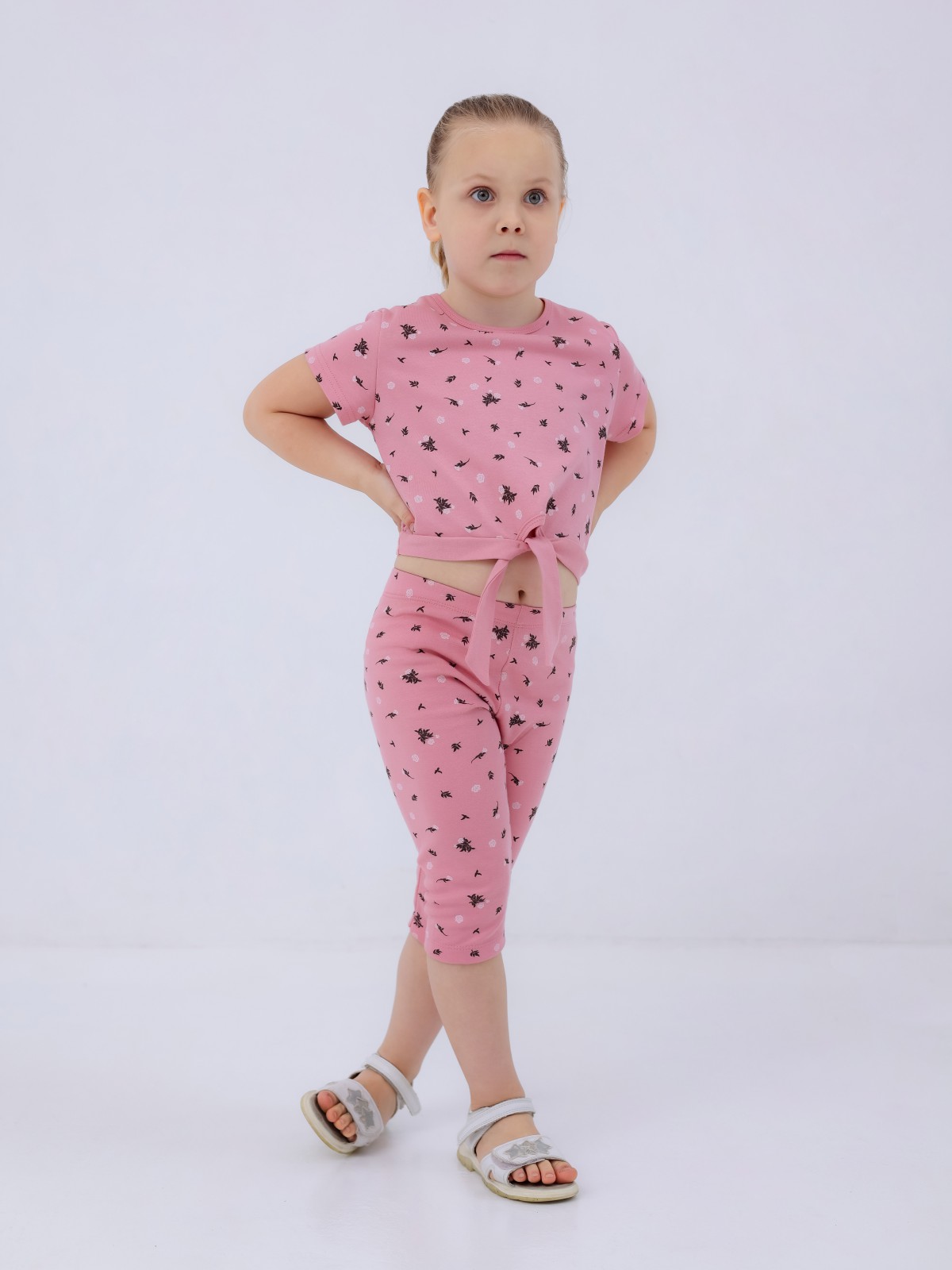 Стильная и невероятно комфортная блузка – отличный вариант для прогулки в летний период. Короткие рукава и свободный крой обеспечат идеальную посадку и не будут сковывать движений ребенка. Завязки на блузке дополнят модный образ.
