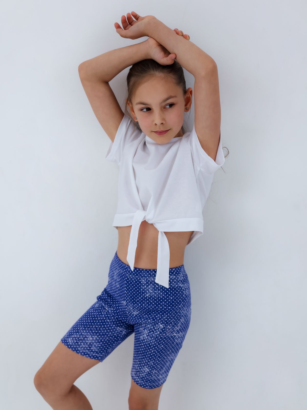 Шорты для девочки, модель №1, рост 116 см, синие в белый горох